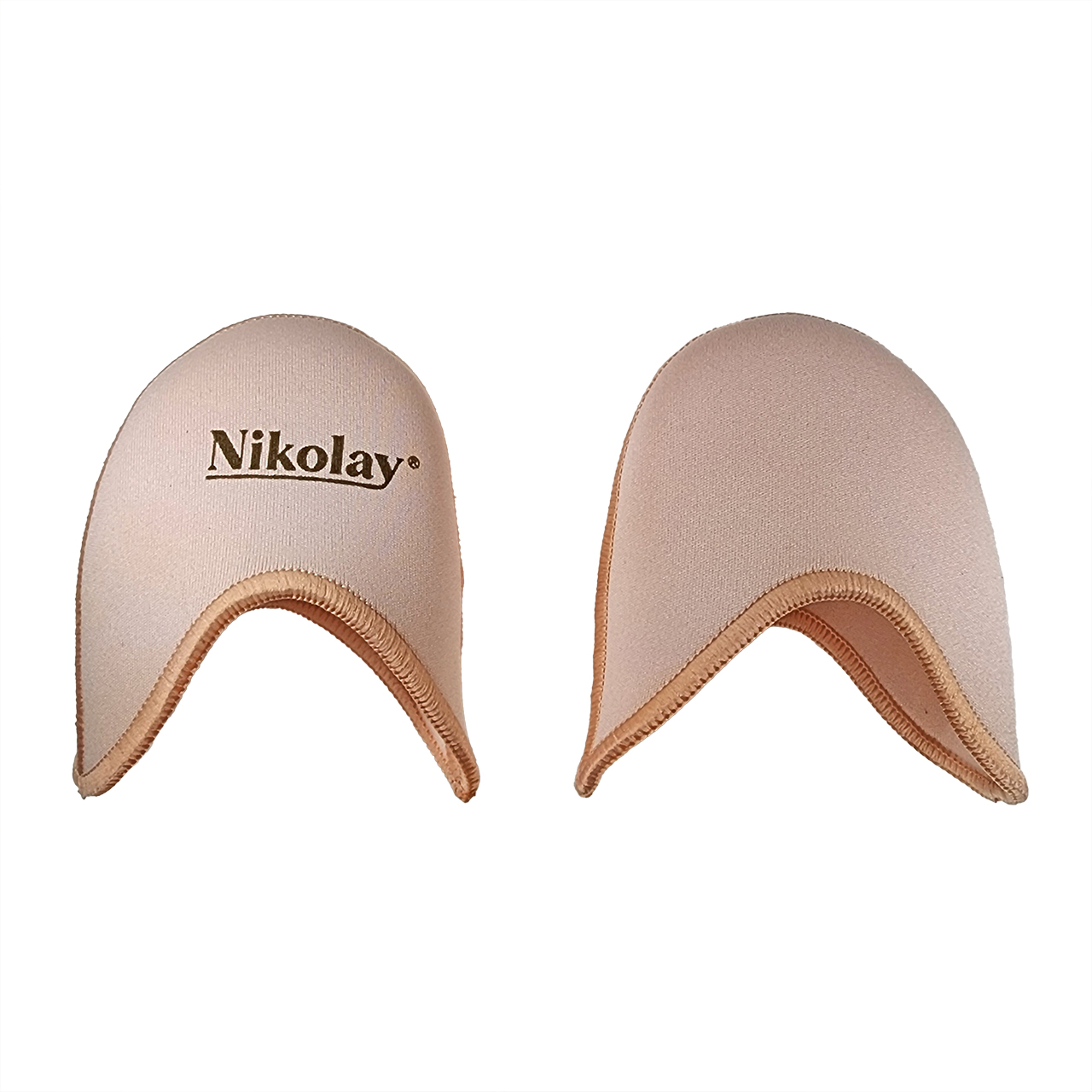 Keep your toes comfortable in Nikolay's Cotton Covered Gel Toe Pads! The thin cotton fabric covering both sides of the silicon gel features soft, flat seams for extra comfort. Designed for dancers with longer toes or bunion issues, these toe pads feature extended wings, providing additional coverage and support. The highly protective design features longer sides, effectively covering bunions, providing optimal comfort and protection in pointe shoes. Covered with natural cotton, these toe pads are slightly thicker than silicone alternatives and can increase the width of your pointe shoe by up to 1/2 a size.