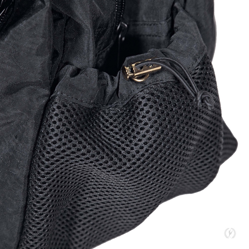 - Mesh drawstring pockets on either end for quick access