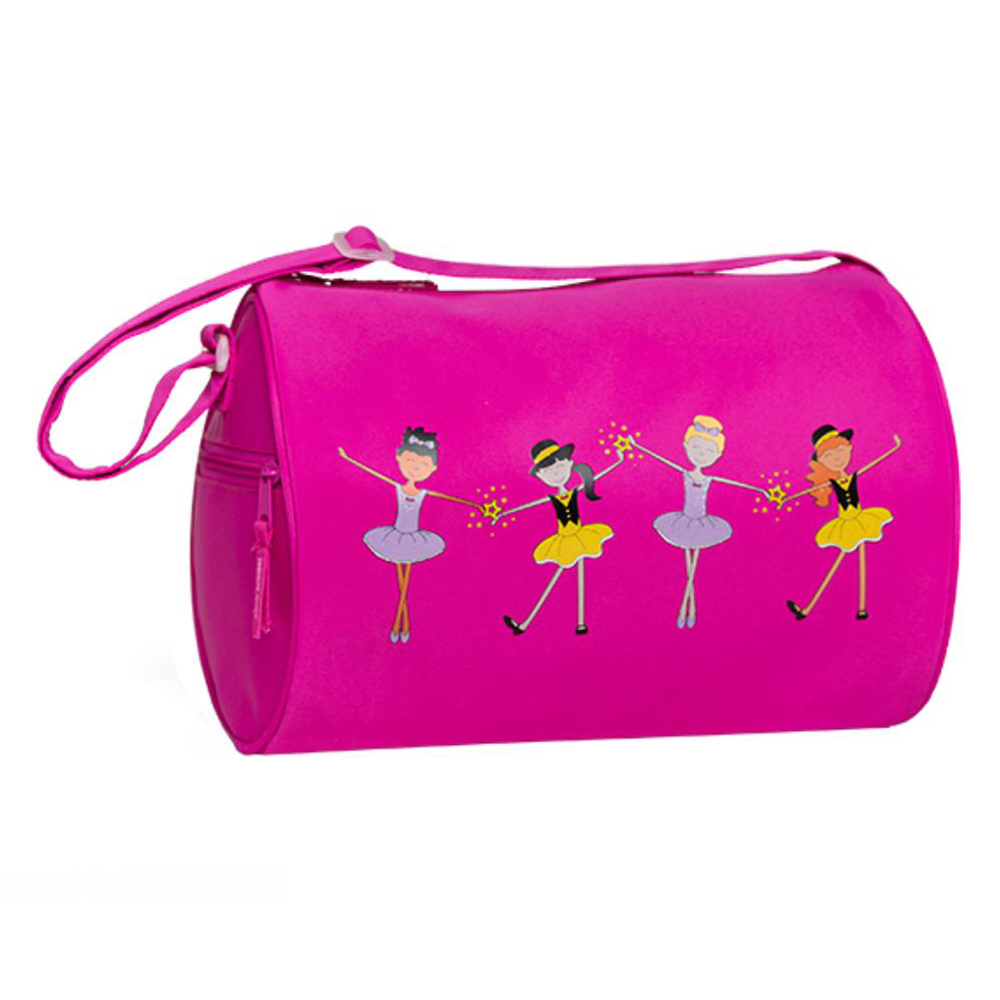 This adorable Dancing Friends Dance Duffel Bag from Horizon Dance is perfect for storing all your dance class essentials! The bright pink bag features a super cute, inclusive design of ballet and tap dancers wearing sparkling tutus, complete with printed glitter.