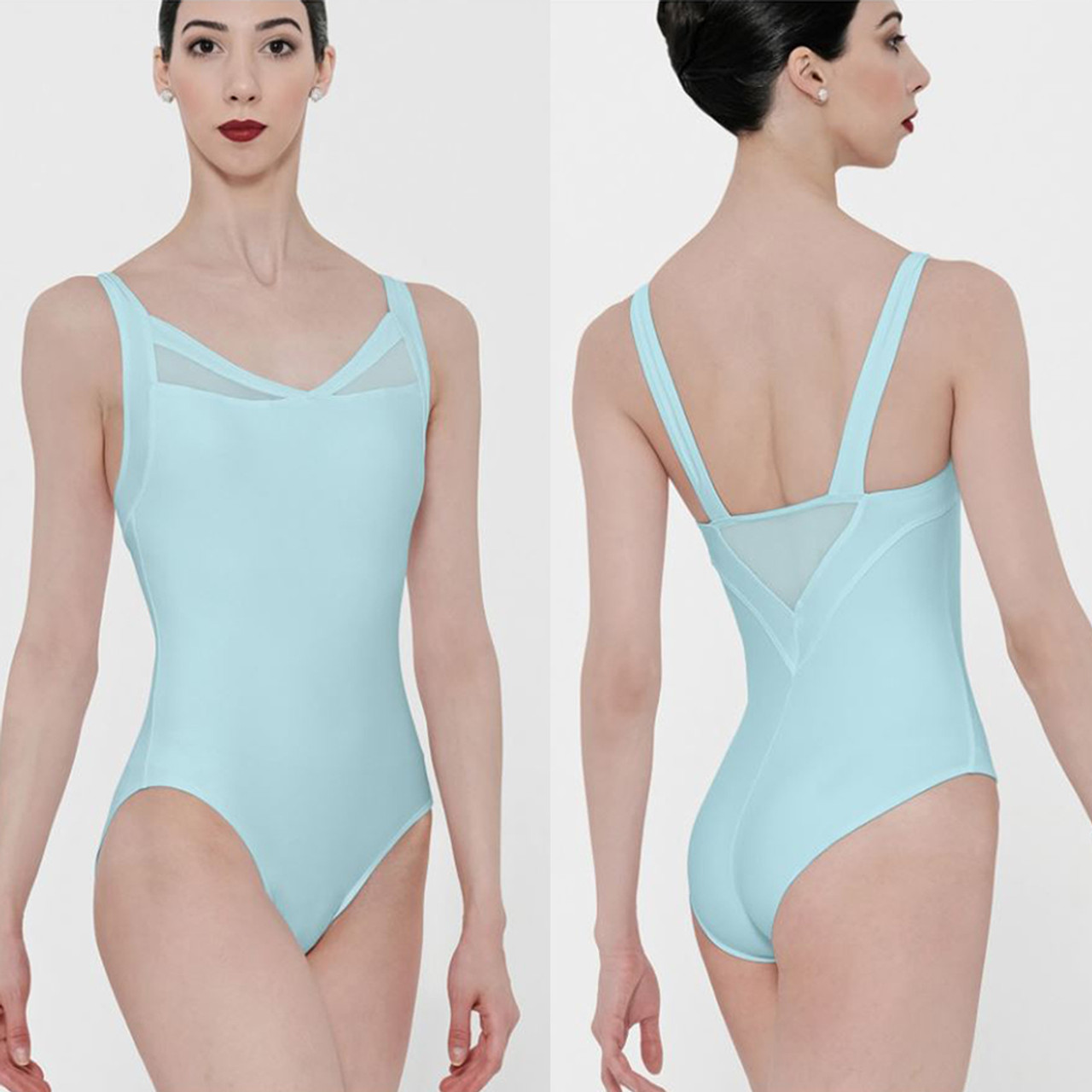 The Cypres Tank Leotard with Mesh Accents is a stylish and comfortable choice for dancers. This microfiber tank leotard features a flattering v-neckline and sheer stretch tulle details. Triangular mesh insets on the upper neckline and middle back add a touch of elegance and visual interest. Designed in France, this leotard combines soft materials with a flattering fit, making it perfect for your next dance class. It includes full front lining for added comfort and coverage.