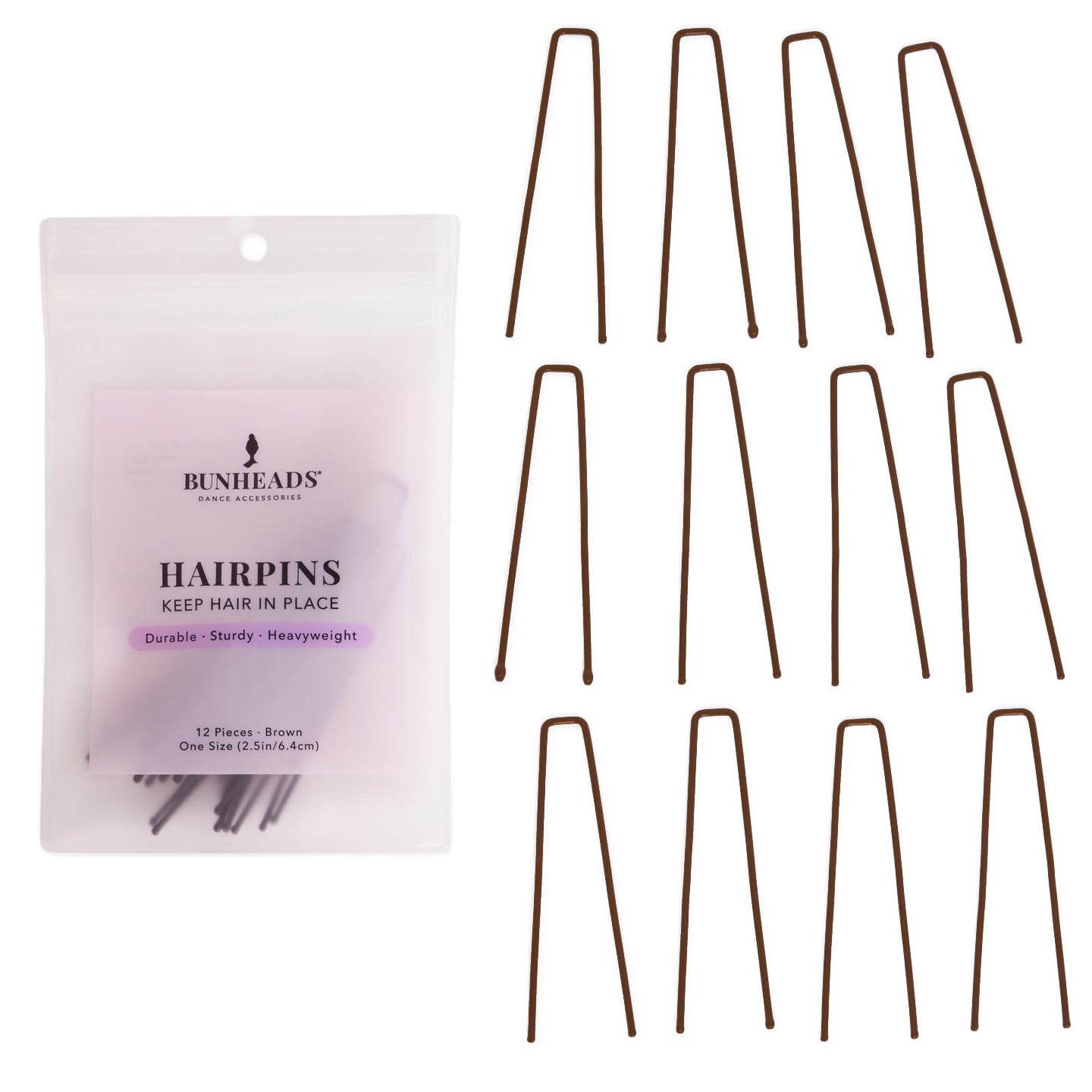 Giving you the confidence you need to perform at your best, the Bunheads® Hair Pins are exclusively designed to keep a dancer's hair in place all day long. Made from 100% solid steel, these hairpins are designed to hold even the thickest and heaviest hair securely in place. The round smooth finish at the ends prevents any scratching, making them gentle on the scalp. Each package contains 12 hairpins. With three different sizes and colors to choose from, you can find the perfect size to match your hair type and style.