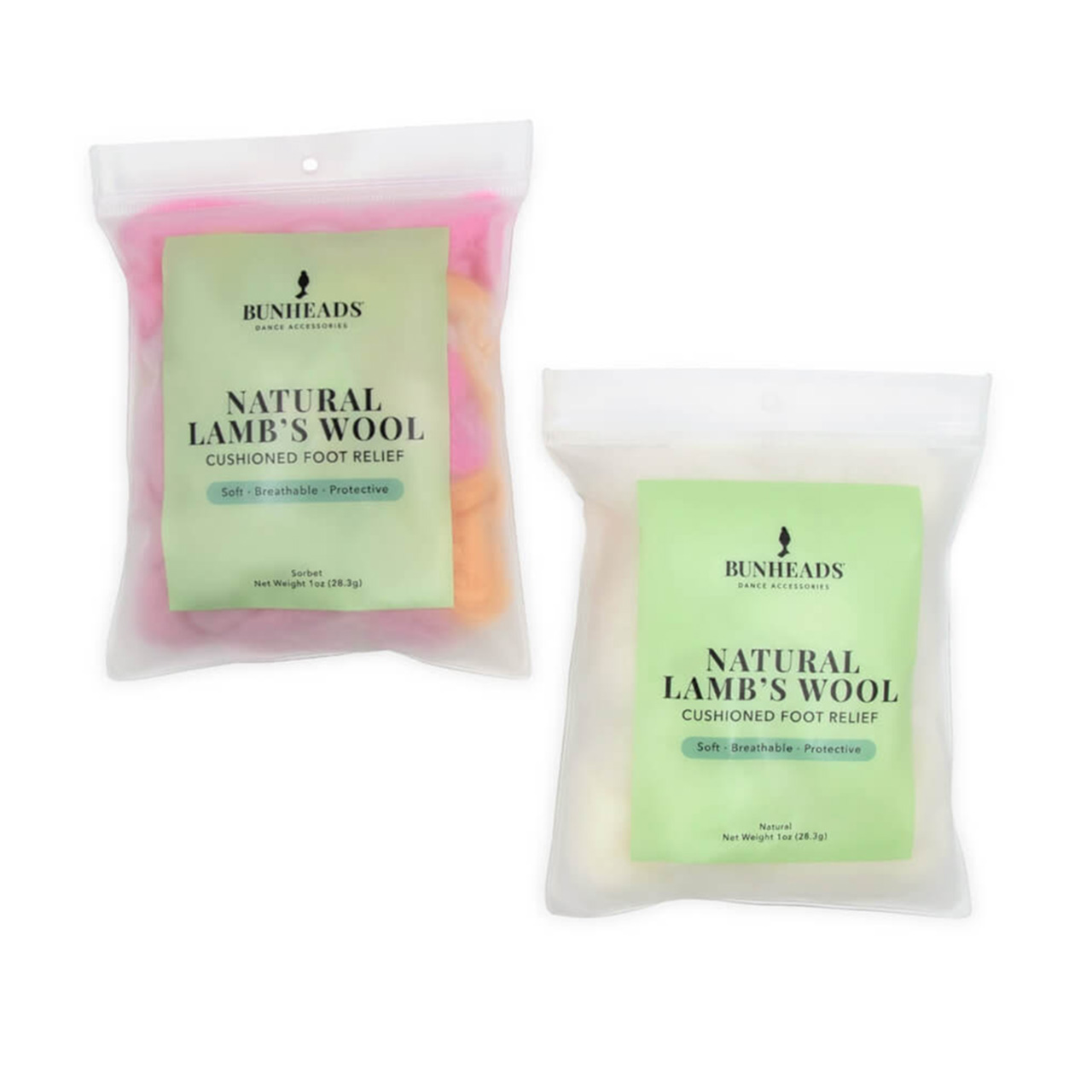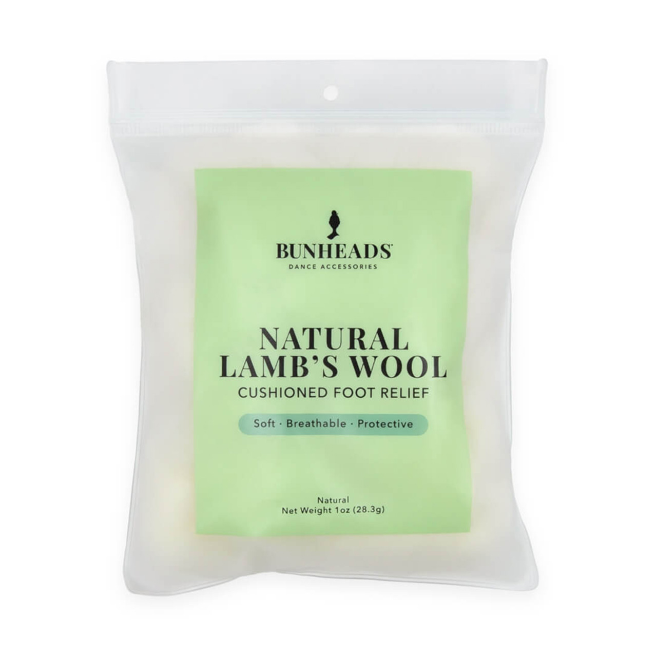 An essential addition to any dance bag, Bunheads Natural Lamb's Wool is your secret weapon for a performance that feels as good as it looks! Specifically designed to pad and separate toes in pointe shoes, it's perfect for managing painful blisters and corns. The ultra-soft Llamn's wool fills gaps in your shoes, conforming to your foot's unique shape for maximum comfort. Light and breathable, it promotes air circulation and prevents moisture buildup, keeping feet cool and dry while simultaneously combating odor. Made of 100% wool, it's non-toxic and hypoallergenic, providing essential padding and protection against blisters and corns. Experience ultimate comfort with this ultra-soft, lightweight, and breathable wool that helps you feel your best. It comes in a convenient, reusable, resealable bag, making it easy to toss in your dance bag.