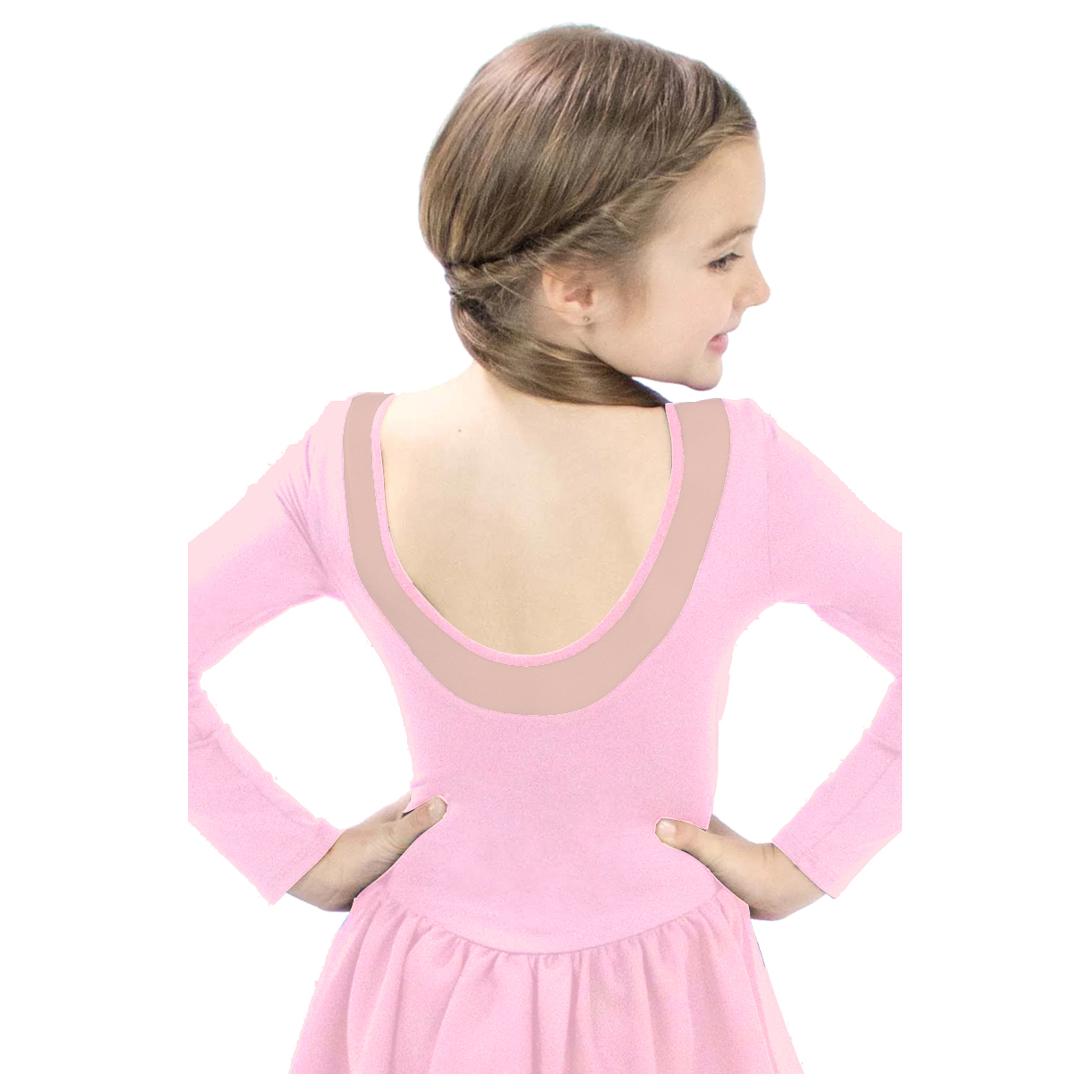 Equal parts elegant and practical, the Basic Moves BM9457G Children's Long Sleeve Leotard with Attached Skirt and Mesh Detail is a gorgeous dance dress that any little dancer will love to wear! Crafted from soft microfiber nylon and spandex, this leotard dress feels wonderfully comfortable against the skin while providing the stretch and durability needed to keep up with every leap, turn, and plié. The beautiful mesh yoke scoop neckline adds a delicate, elegant touch both front and back, giving this dress a polished and refined look that stands out in any class or recital. A full front lining ensures comfortable, confident coverage throughout every wear, while the classic ballet leg line creates a flattering, timeless silhouette. Long sleeves add a modest, graceful style that is perfect for cooler studios and formal performances alike. Available in Pink, this charming dance dress is a sweet and sophisticated choice for any young dancer's wardrobe.