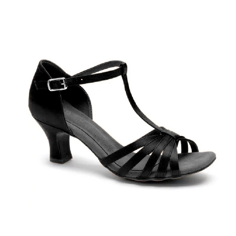 Push boundaries in the Sara ballroom Shoe. This woman's ballroom shoe features a T-strap that allows 360-degrees of flexibility for the ankle joint. The front strap design is fully backed to ensure stability and the perfect hug to the foot. Perfect for Latin and Salsa dancers looking for extra flexibility and comfort.