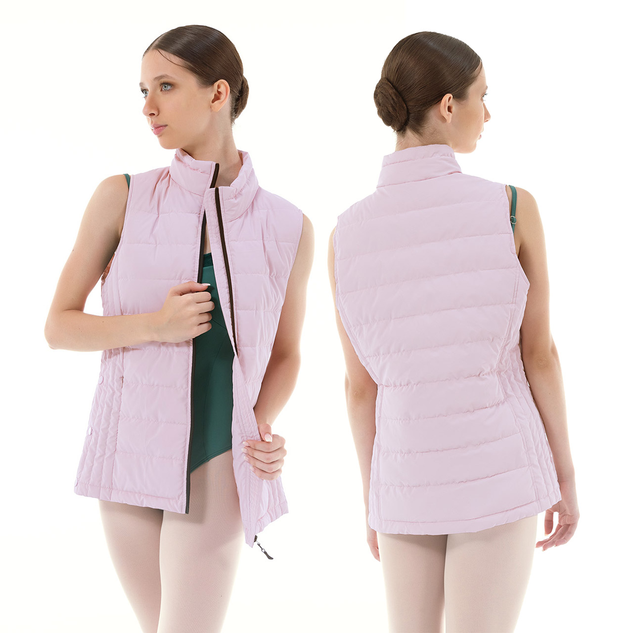 Step into a world of "supple softness" with Nikolay's Unisex CLOUD Puffer Vest. Engineered specifically for the needs of dancers, this unisex quilted vest offers exceptional warmth without the bulk. Its genius lies in the details: featuring three adjustable snaps on each side, the Cloud vest allows for customizable length and width, making it the perfect layer to fit comfortably over a practice or performance tutu. Whether you are backstage at a competition or moving through barre, this vest keeps your core warm while ensuring your hair and costume remain perfectly intact. The Cloud Vest also includes two small zippered pockets for security, as well as Nikolay's delightful pointe shoe zipper pull on the main zipper. Perfect for layering, this versatile vest is a must-have for every dancer’s wardrobe, adding both style and comfort wherever you go.
