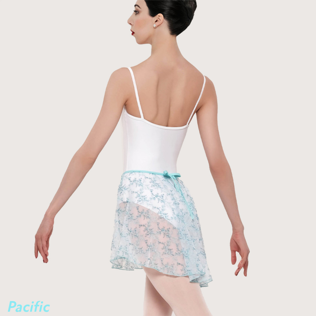 Take the stage in Wear Moi's women's Cypella ballet skirt from the Mademoiselle collection. This asymmetrical ballet skirt features a high-low cut, short in front and medium in the back, extending your leg line for an elegant look. The pull-on style is made from stretch tulle that has been embroidered all over with tiny flowers for a stunning effect. It has a finished waistband with a tiny bow sewn at the center in the back, giving the look of a faux-wrap style. This ballet skirt will pair with your favorite leotard for your next ballet class!