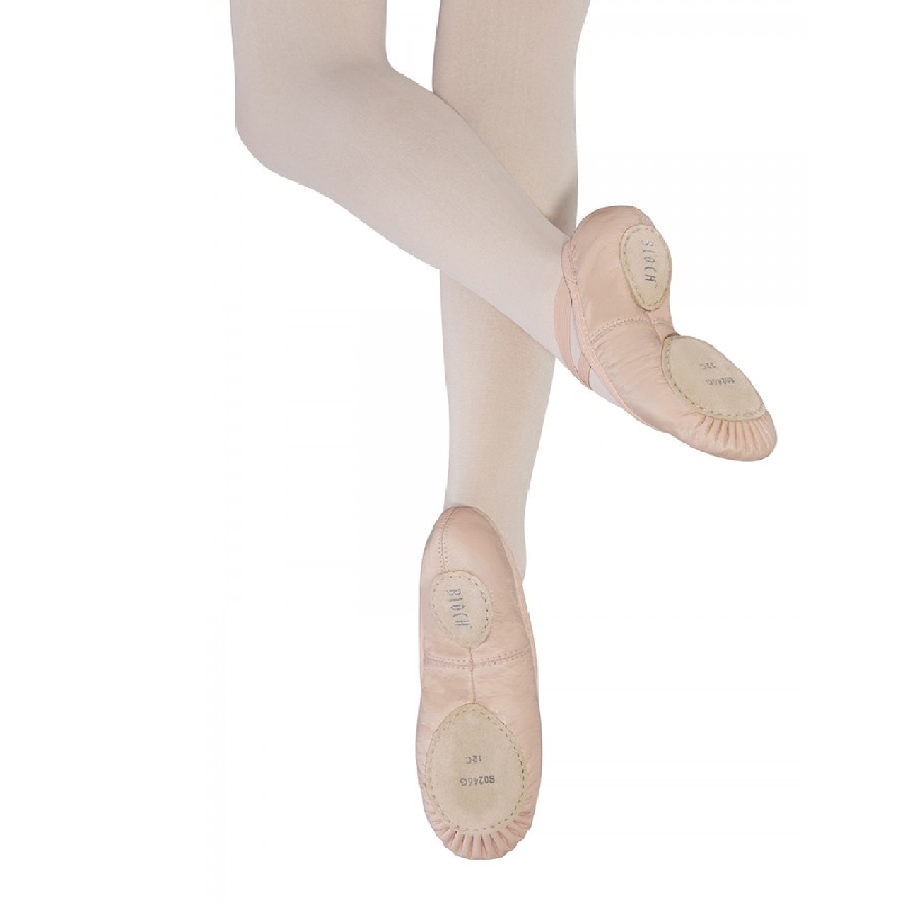 The Bloch S0246L Odette Ballet Shoe for adults is a lightweight split sole leather ballet flat designed for optimal comfort and clean lines. Featuring a super soft leather upper, the shoe utilizes an elastic binding that replaces the need for an untidy drawstring, eliminating uncomfortable pressure on the top of the dancer's foot. The Odette shoe includes pre-sewn criss-cross elastic over the instep, creating a secure fit. The added cushioned insole ensures long-lasting comfort for young feet during classes and practice.